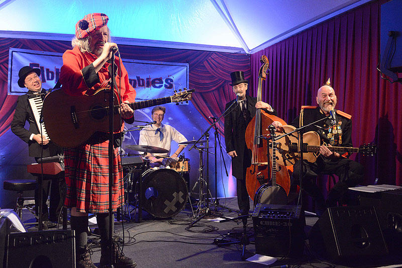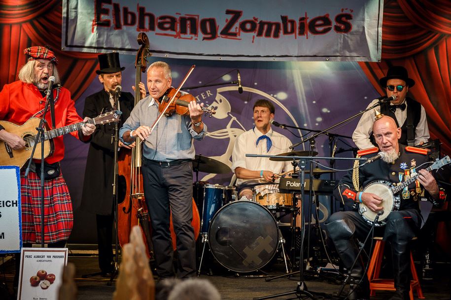 Die vormaligen Bewohner der rechtselbischen Dresdner Weinberge, der 7. Earl of Findlater, Prinz Albrecht von Preußen, Karl August Lingner, Heinsius von Mayenburg und Jungpionier Max, treffen sich, vom Lärm der Schlössernacht aus ihrem ewigen Schlaf geschreckt, auf einen Absacker, gründen kurzerhand eine Band und besingen den Apfel, den Whisky, die Mutti und das Mundwasser.